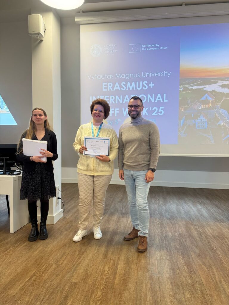 În ceea ce privește partea de mobilitate a staff-ului, în ultimii doi ani doamnele secretare Aura Bedelean și Simona Pop au participat activ la programe de training la Universitatea CY Cergy din Paris (2024) și respectiv la Universitatea Vytautas Magnas din Vilnius (2025).